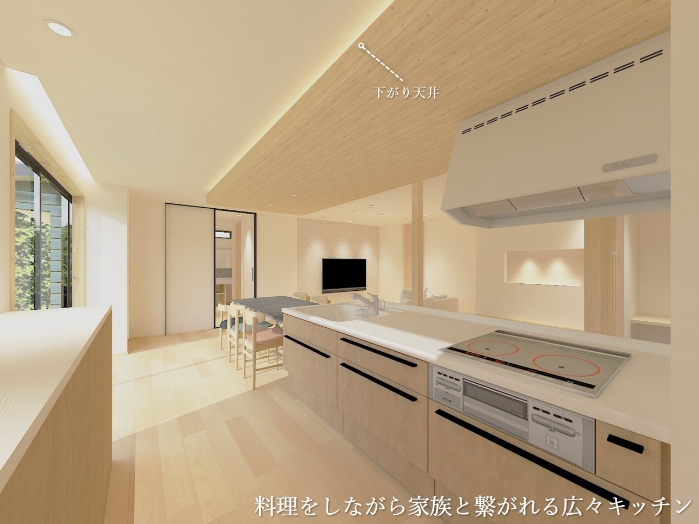 料理をしながら家族と繋がれる広々キッチン